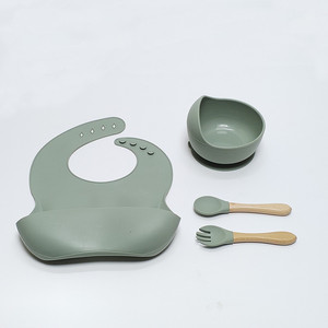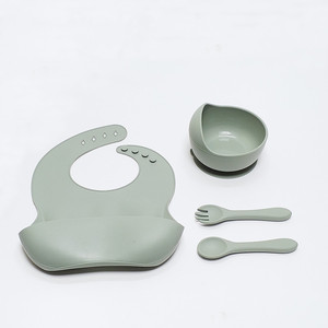 オリーブグリーン(子供用ボウル+よだれかけ+フルシリコン+スプーン+フォーク)