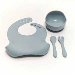 シルバーグレー(子供用ボウル+よだれかけ+フルシリコン+スプーン+フォーク)