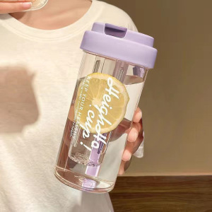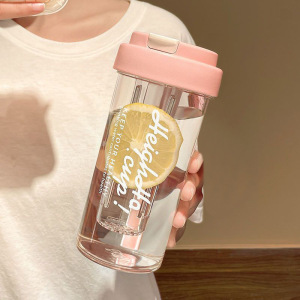 杯子ins高颜值茶水分离泡花茶杯带茶漏带盖随身杯塑料学生吸管杯