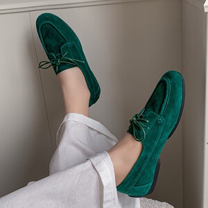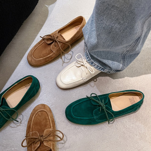 英国風ウォッシュド牛革作業着小さな革靴 2025 秋厚いミディアムヒールスクエアトゥ本革深口シングルシューズ女性用