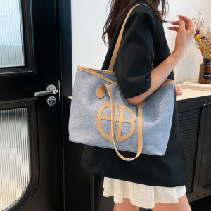 批发复古撞色手提托特包女包2025夏新款大容量单肩包高级感腋下包