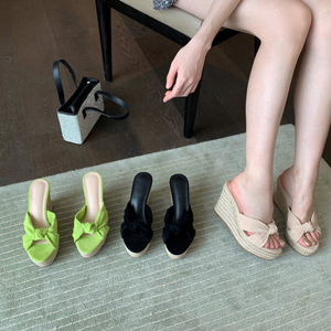 ウェッジサンダル、麻縄編み、多用途スエード無地ストラップスプライシングスリッパ、女性用、通気性と涼しさ