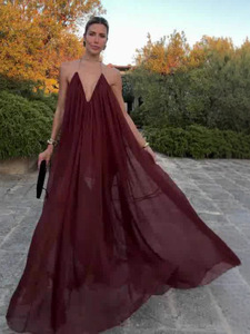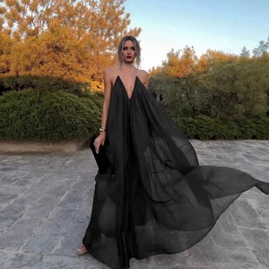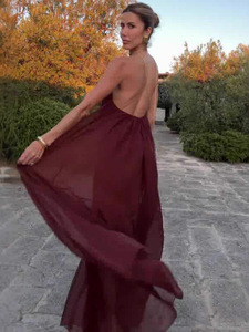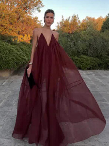 2025 夏の新しいクロスボーダー対外貿易婦人服アマゾンファッションエレガントなディープ V フィーリングホルターネックサスペンダードレス女性用