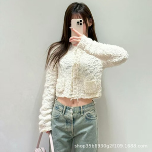 高版本2025秋冬新款经典蝴蝶结羊毛圈呢短款长袖开衫外套上衣女