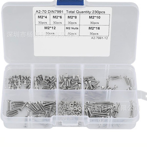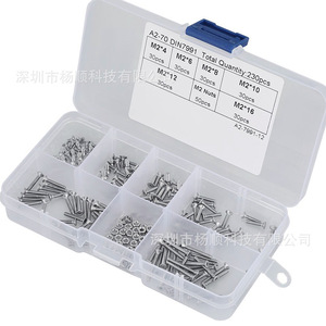 跨境230pcs盒装304不锈钢沉头内六角螺丝配螺母M2*4-16mm组合套装