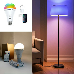 跨境亚马逊壁灯台灯光源免布线充电灯泡RGB遥控调光电池供电球泡
