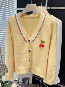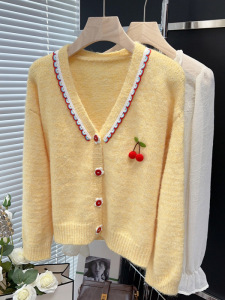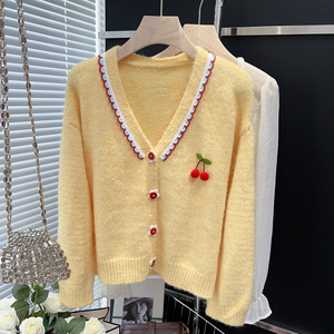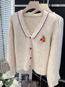 セーターコート女性の秋と冬の甘いニッチな新しいデザインのルーズショートニットカーディガントップ