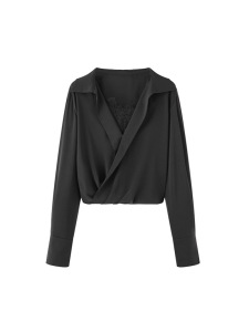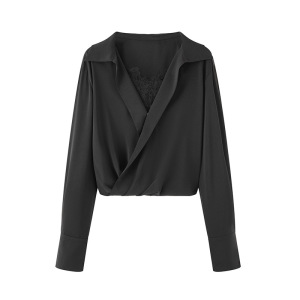 2025年秋季新款女装时尚甜美蕾丝刺绣拼接长袖衬衫小上衣AR503026