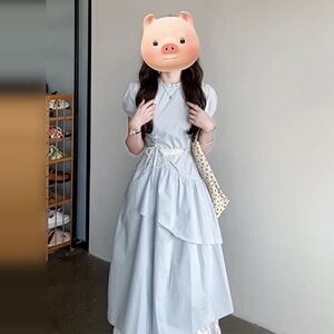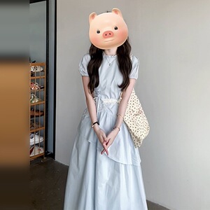 女性のための美しい夏の半袖ドレス 2025 年の新しいスタイルの小さなプリーツ痩身ケーキロングスカート
