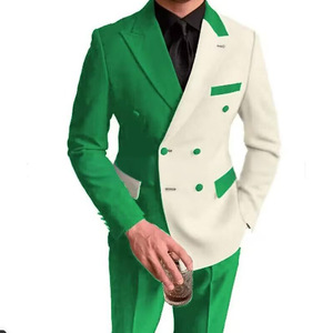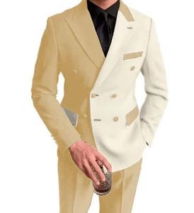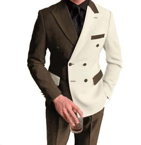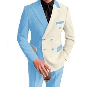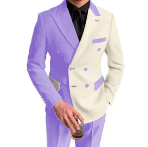 韩版休闲双排扣帅气轻商务拼色西服套装绅士气质男装两件套高级感
