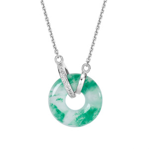 非洲翠甜甜圈项链S925银15mm甜甜圈冰种飘花新中式吊坠小红书同款