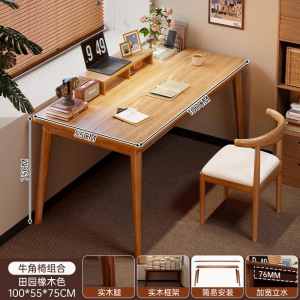 书桌学生家用实木腿学习写字桌办公桌成人简易长方形卧室电脑桌子