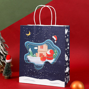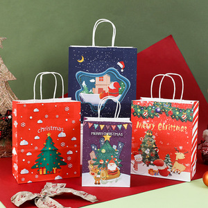跨境现货圣诞礼品袋牛皮纸袋卡通糖果袋圣诞节礼品纸袋印花包装袋