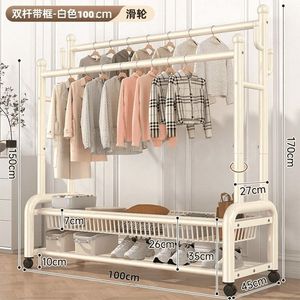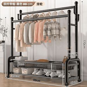 挂衣架落地卧室加厚晾衣架室内家用衣服架子落地式简易双杆衣帽架