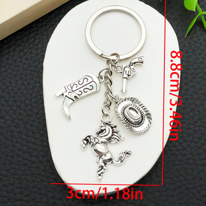 ER555-古代シルバーウエスタンホースカウボーイハットブーツキーホルダー-8.85g