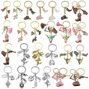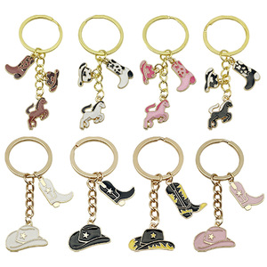 ER1266-オイル滴るホワイト ウエスタン カウボーイ ハット ブーツ ポニー キーホルダー-6.2g
