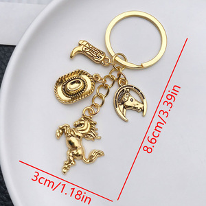 ER853-古代ゴールドウエスタンホースカウボーイハットブーツキーホルダー-13.5g