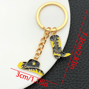 ER1261-オイル滴るブラック ウエスタン カウボーイ ハット ブーツ キーホルダー-8g