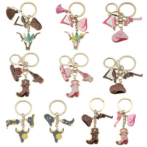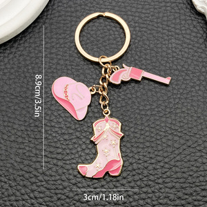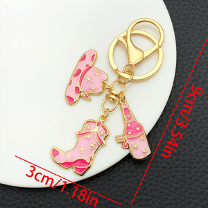 ER1263-オイル滴るピンクウエスタンカウボーイハットブーツキーホルダー-8.1g