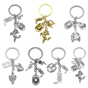 国境を越えたアマゾンの売れ筋アンティークシルバー/オイルドロップウエスタンカウボーイハットピストルキーホルダークリエイティブジュエリーペンダント