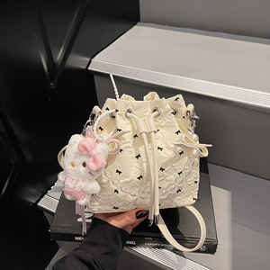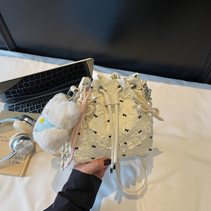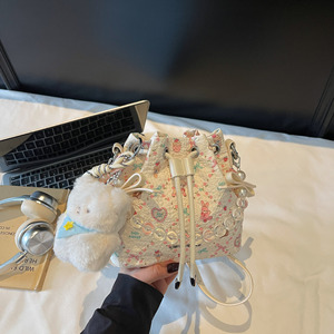 艾米兔女包洋气串珠手拎福袋包包女2025新款百搭单肩斜挎水桶包
