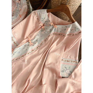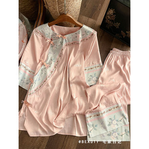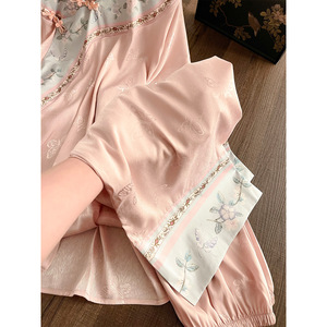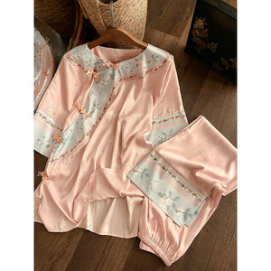 新中式蝴蝶提花冰丝短袖睡衣女夏2025新款复古国风长裤套装家居服