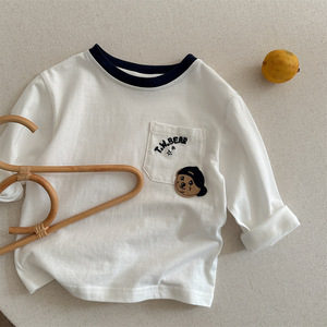 儿童长袖T恤2025秋男童日系卡通小熊T宝宝小童全棉打底衫小童上衣