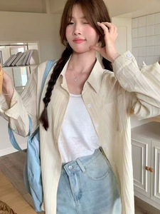 法式棉麻衬衫外套女春秋季薄款慵懒风小众衬衣开衫肌理感防晒上衣