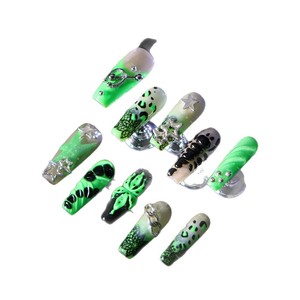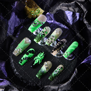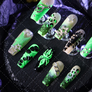 厂家穿戴甲精品欧美赛博朋克暗黑风花朵星星豹纹夜光蝎子万圣节美