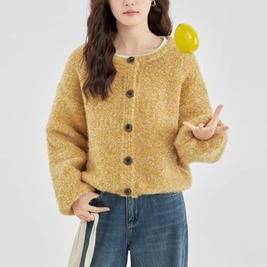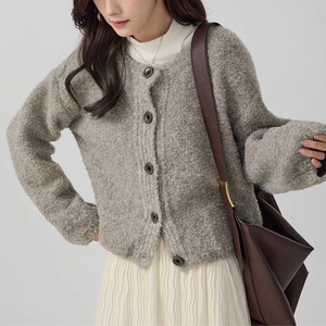 2025秋冬季新款慵懒风宽松显瘦圆领针织短款高腰毛衣开衫外套