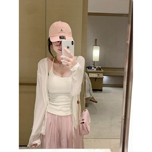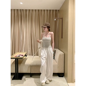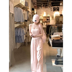 【公式】挂脖背心外穿带胸垫+休闲长裤+薄款针织开衫