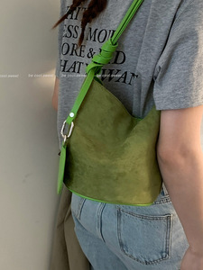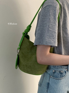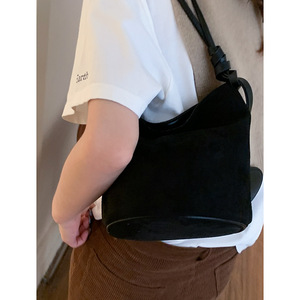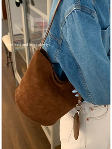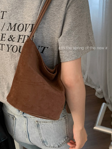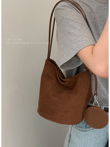 跨境复古高级感腋下包包女2025新款大容量麂皮绒水桶包简约单肩包