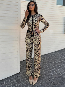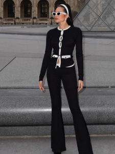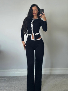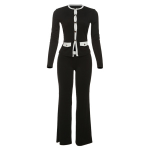 ヨーロッパとアメリカの服秋 2025 新しいパーソナライズされたラウンドネックボタンコントラストカーディガン長袖ハイウエストスリムパンツスーツ