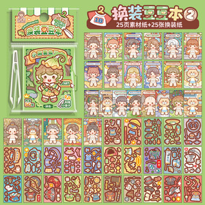 小麻薯贴纸书女孩儿童豆豆本换装书diy玩具免裁剪迷你换装贴纸画