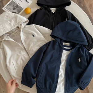 儿童连帽外套男2025秋季新款小童纯色开衫上衣潮宝宝冲锋衣女韩版