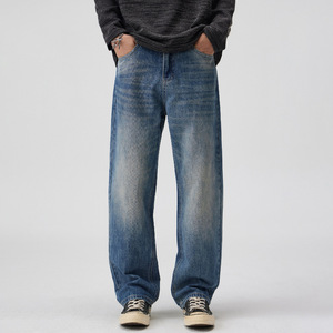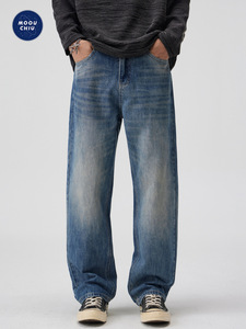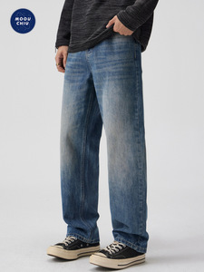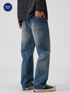 沐丘男装∣潮牌做旧水洗牛仔裤男美式通勤Cleanfit宽松直筒长裤子