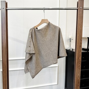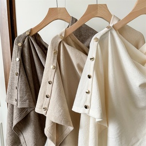 秋冬新款针织斗篷搭肩坎肩围巾女百搭多功能时尚保暖带扣毛线披肩