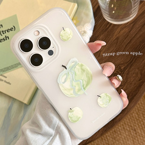 インスタイルグリーンアップルに適した Apple 16 携帯電話ケース iphone15pro max 小さな新鮮な 14 ストラップ 13 シリコーン