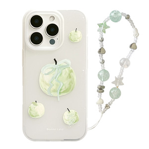 透明白ストラップグリーンフルーツ+グリーンビーズシルバーハートロープ