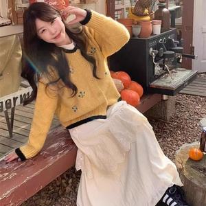 法式小香风重工刺绣 针织短款秋冬季新款 设计感洋气减龄百搭毛衣