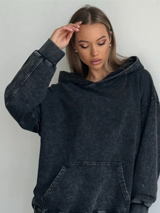 2024美式秋冬季保暖洋气纯色宽松百搭做旧复古气质水洗黑连帽卫衣