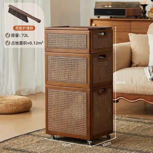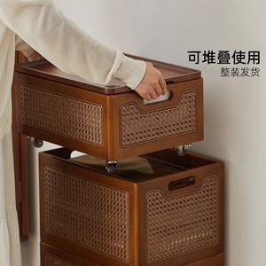 实木藤编收纳筐带盖防尘衣服整理大容量杂物储物筐可移动玩具收纳