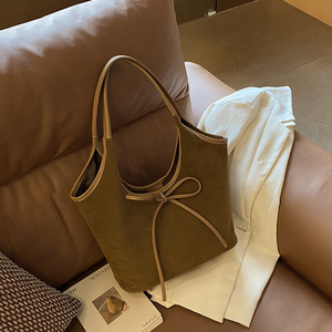 鹿皮绒手提菜篮子包包女2025新款秋冬复古托特包大容量质感腋下包