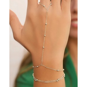 欧美跨境ins风高级感百搭圆珠链手背链 简约小众批发圆珠连指手链