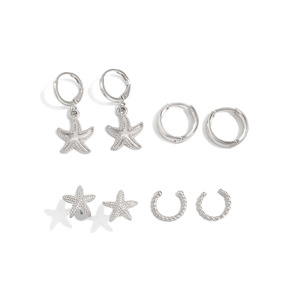 欧美跨境ins度假风花朵海星耳钉套装 甜酷精致小巧蝴蝶结c形耳环