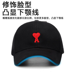 时尚潮牌新款爱心硬顶棒球帽女显脸小春秋百搭鸭舌帽子男情侣ami