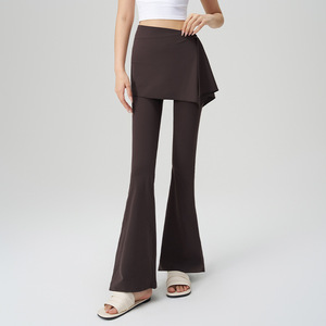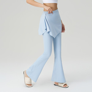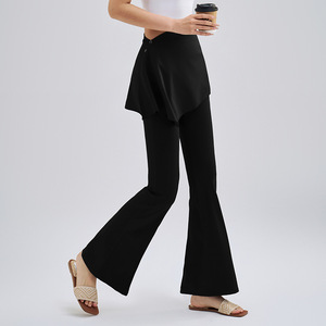 Huanpan ヒップカーテン付きヨガパンツ、ヒップカバーと痩身ダンスウェア、ツーピースボタンヒップカーテン、女性用スポーツフィットネスフレアパンツ