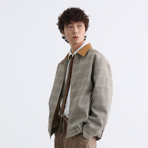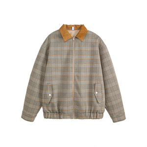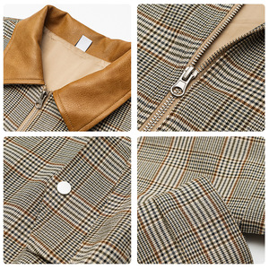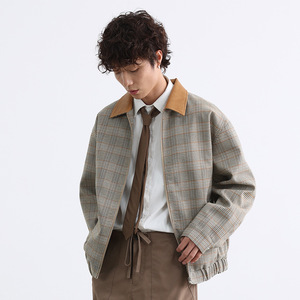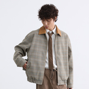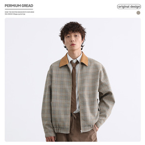 潮流复古老钱风翻领工装夹克男女短款千鸟格底特律情侣休闲外套