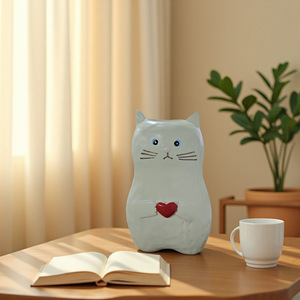 跨境新品抱爱心猫咪花 瓶装饰树脂工艺品爱猫者礼物家居摆件