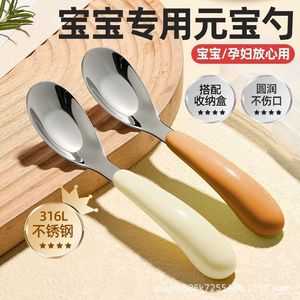 高颜值不锈钢勺子婴幼儿童元宝勺子宝宝进食吃饭喝粥勺子辅食勺子